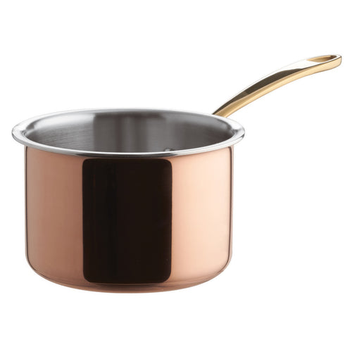 Mini Sauce Pan, 20 oz., 4" dia. x 2-3/4"H, 3-ply, copper, aluminum and stainless steel construction, 2.7mm wall thickness, riveted stainless steel titanium coated handle (hand wash only), Paderno, Mini Copper