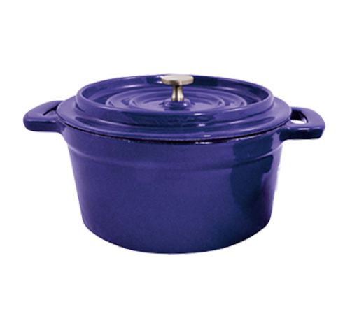 Mini Dutch Oven 29 oz., 5-1/4" x 2-3/4" deep, round, once enameled cast iron construction, matching lid with heat resistant knob, blue, Paderno, Cookware