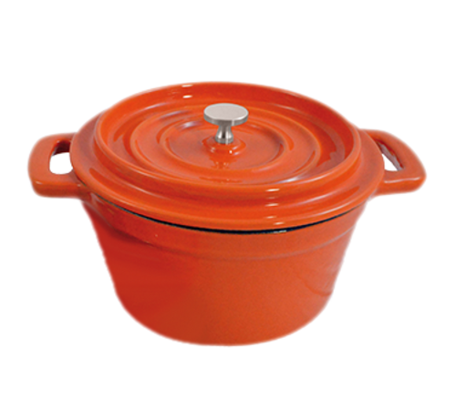 Mini Dutch Oven 29 oz., 5-1/4" x 2-3/4" deep, round, once enameled cast iron construction, matching lid with heat resistant knob, orange, Paderno, Cookware