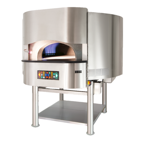 Morello Forni Rotary Pizza Oven, gas, 59" inside cooking diameter, rotating cooking deck, touch screen electronic control system, (25) 8", (14-16) 10", (12-14) 12", (6-7) 16" pizza capacity, 7” thick sealed insulated walls, dual burners system (internal dome burner & under deck, emergency stop button, high refractory premium grade alumina with heavy metal enclosure, stainless steel finish, 220v/60/1-ph, 169,000 BTU, NSF, UL