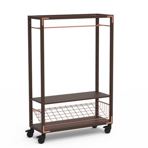 Canvas Coat Rack, dark brushed copper on casters, Steelite Performance, Canvas (non-stock item)