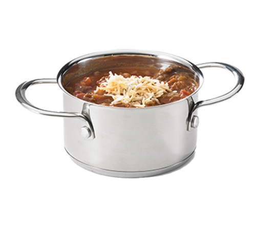 Mini Server, 14 oz., 4-3/8" dia. x 2-3/8", round, with 2 handles, oven safe up to 500°F, single ply with clad base, safe for hot plate, induction/oven safe, dishwasher safe, 18/0 base plate, 18/8 stainless steel, NSF (1 each minimum order)