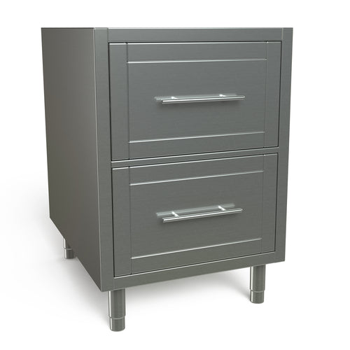 Outdoor Cabinet, 24"W x 30"D x 36"H, (2) drawers, 304 stainless steel construction, stainless steel legs with adjustable feet (top not included)