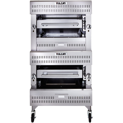 V Series Deck-Broiler, Heavy Duty range match, Gas, double-deck, ceramic over infrared, (2) 25-1/2" x 24-1/2 cooking grids, spring balanced, 5 position grip, stainless steel front, top & sides, casters, 1" rear gas manifold with regulator, 200,000 BTU, NSF, CSA Star, CSA Flame