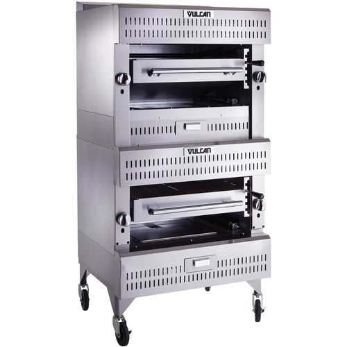 V Series Deck-Broiler, Heavy Duty range match, Gas, double-deck, infrared over ceramic, (2) 25-1/2" x 24-1/2 cooking grids, spring balanced, 5 position grip, stainless steel front, top & sides, casters, 1" rear gas manifold with regulator, 200,000 BTU, NSF, CSA Star, CSA Flame