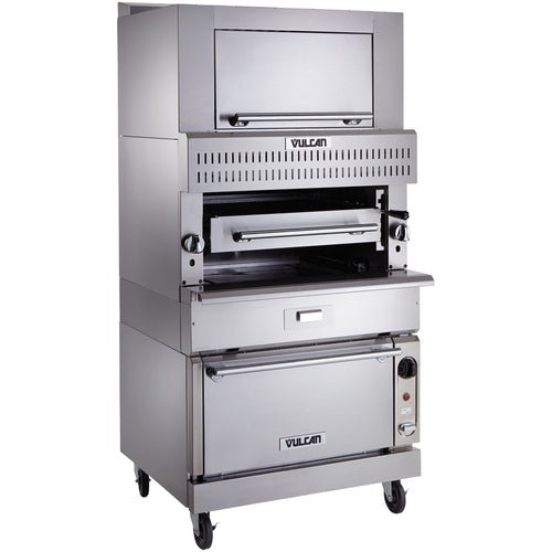 V Series Deck-Broiler, Heavy Duty range match, Gas, single-deck infrared burners, 25-1/2" x 24-1/2 cooking grid, spring balanced, 5 position grip, standard oven base, stainless steel front, top front ledge & sides, 6" stainless steel legs, 1-1/4" front gas manifold, 150,000 BTU, NSF, CSA Star, CSA Flame