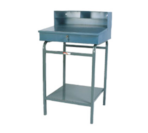 Desk, Receiving, stand up design, sloped top writing surface, with storage compartment below lift-top, enamel heavy-gauge steel construction