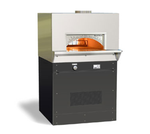Bistro Stone Hearth Oven, wood burning only, 34" w x 27" d hearth, (8) 8", (6) 10", (4) 12" or (2) 16" pizza capacity, monolithic cast-ceramic floor & dome create "deep heat sink", heavy-duty stainless steel exoskeleton, heavy duty steel frame base, 10" OD flue collar, ETL-Sanitation