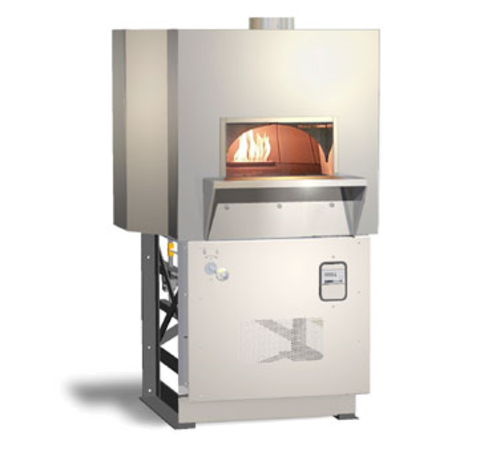 Mt. Chuckanut Stone Hearth Oven, radiant gas flame in dome, 37" diameter hearth, (10) 8", (6) 10", (4) 12" or (2) 16" pizza capacity, monolithic cast-ceramic floor & dome create "deep heat sink", angle iron stand, 8" OD flue collar, 72,000 BTU, cETLus, ETL-Sanitation