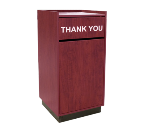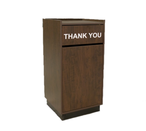 Trash Receptacle, single, 21" x 20" x 44" high, swing door with "Thank you" in white, magnetic access door, holds 36 gallon rigid liner (sold separately) ABS textured kick-plate (built to order, shipped fully assembled)