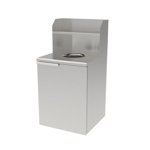 Waste Receptacle, 32 gallon, top tray shelf, for indoor use, stainless steel construction, fits square waste bin: 20"W x 20"D x 27-3/4"H, ETL
