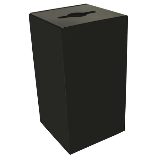 Recycling Squared™ Container, 28 gallon, 15" x 15" x 28"H, square, flip-up lid with combo opening, built-in bag holder, (2) vinyl "Recycle" decals, fire-safe, powder-coated steel, charcoal