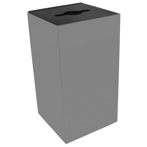 Recycling Squared™ Container, 28 gallon, 15" x 15" x 28"H, square, flip-up lid with combo opening, built-in bag holder, (2) vinyl "Recycle" decals, fire-safe, powder-coated steel, slate