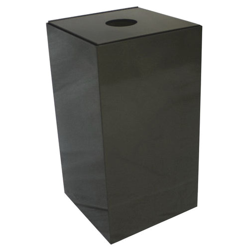 Recycling Squared™ Container, 28 gallon, 15" x 15" x 28"H, square, flip-up lid with 4-1/4" dia. round opening, built-in bag holder, includes (1) each: "Cans" & "Bottles" vinyl decals, fire-safe, powder-coated steel, charcoal