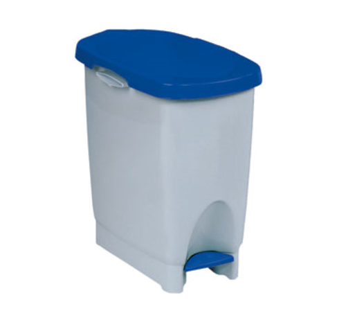 Araven Eco-Bin Rubbish Bin, 5.8 gallon, 16-5/8" x 10-1/4" x 16-1/2", hands-free design, foot pedal operated, polypropylene, white with blue hinged lid