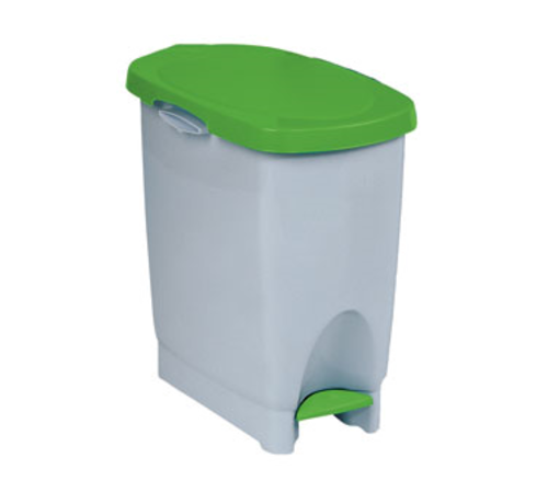 Araven Eco-Bin Rubbish Bin, 5.8 gallon, 16-5/8" x 10-1/4" x 16-1/2", hands-free design, foot pedal operated, polypropylene, white with green hinged lid