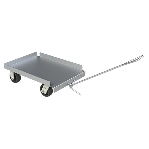 Glass Rack Dolly, 21"W x 21"D x 8"H, 1/8" thick sheet metal base, with reinforced lip design (three edges up and one edge down), pull hook, (4) standard duty 5" poly-U casters, aluminum construction, NSF, Made in USA