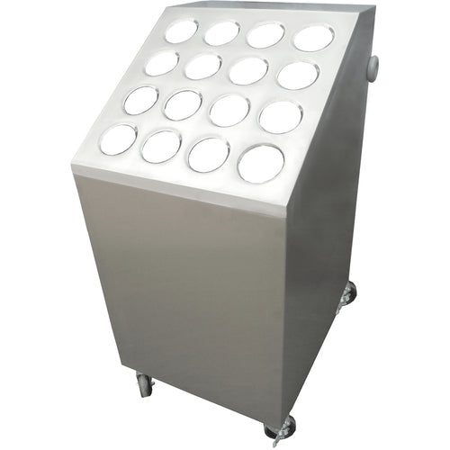 Silverware Dispenser, 24"Wide x 28"Long x 48"High, with Tray Rail, (16) Plastic Holders & Casters, (2) with Brakes