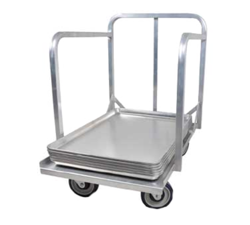 Bun Pan Truck/Dolly, with push handle, open frame design, single stack with side & rear supports, for 18" x 26" or 18" x 13" pans, 1" square tubing, all welded aluminum construction, 5" swivel plate casters (Available in Effingham and Nevada)