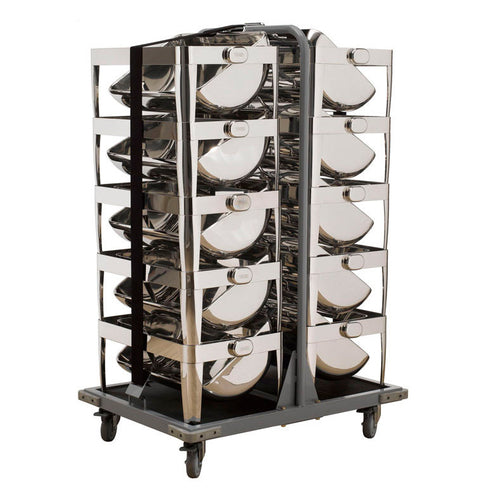 Ibis Stacking Trolley, 38-1/2"L x 27-1/4"W x 60-3/4"H, holds (10) Ibis round or oblong chafers, rubber matting, powder coated steel pipe (for 1A17510 & 1A17610 series) (chafers & cover sold separately)