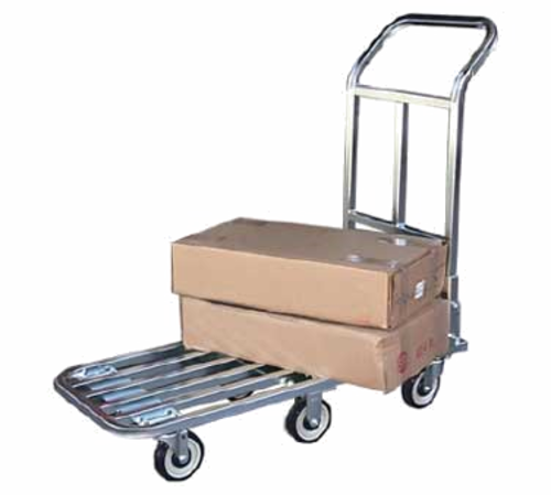 Kelmax Flat Cart, single platform, 40"W x 18-1/2"D x 41"H, chrome, (6) 5" x 1-1/2" plate casters, 800 lb. capacity, KD