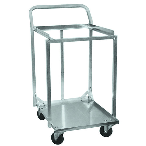 Kelmax Tray Dolly, platform design with handle, double stack, designed for 10" x 16" trays, solid base, 1/2" lip, 16 ga. stainless steel construction, 5" swivel plate casters, 600 lb. capacity