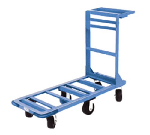 Utility Cart, 18" x 51", all welded angle iron steel construction, rounded front corners with (2) front bumpers, four 5" rubber swivel plate casters & (2) 6" rubber center wheels, blue