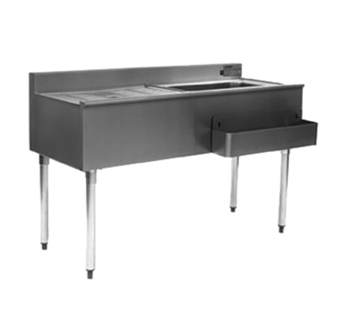 1800 Series Underbar Cocktail Workstation, 48"W x 20"D, 24" x 8"Deep fully insulated ice bin right, 75 lb. capacity, 24" speedrail, 24" drainboard left, bullnose front end, 1-1/2" NPT drain, type 304 stainless steel bin, front & top, stainless steel ends, 1-5/8" O.D. galvanized tubular legs with adjustable bullet feet, all welded 304 stainless steel construction, NSF