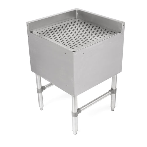 Underbar Corner Drain Board, freestanding, 21"W x 21"D x 32-1/2"H, drainboard with top drain and removable perforated insert, 3"H backsplash, 18/300 stainless steel construction, stainless steel legs & side bracing, adjustable stainless steel bullet feet, NSF (weights are subject to additional packaging)