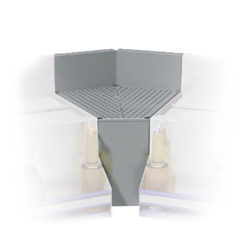 Prestige corner filler, inside corner, 45⁰, fits 25" deep left & 25" deep right units, includes: removable perforated drainboard top with 1" drain (bolts to adjoining units, no legs), NSF