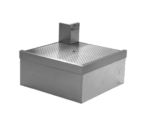 Spec-Bar® Underbar Corner Workboard, outside full corner, 90° angle, fits 24"D underbar equipment, drainboard top with perforated stainless steel insert, clipped corners on front & rear, 8"H backsplash, 1-1/2" I.P.S. drain, includes mounting clips, 304 stainless steel construction, no legs (mounts to adjacent underbar equipment), NSF