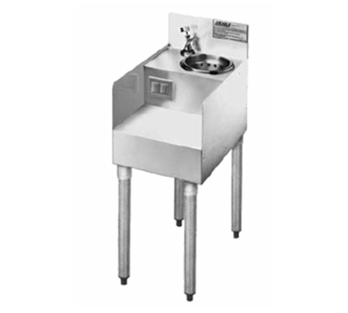 1800 Series Underbar Side-To-Side Modular Add-On Unit, 12"W x 19-1/2"D, blender recess with liquid waste chute, duplex receptacle with waterproof cover plate (field mount & wire), 18 gauge 304 stainless steel top, (2) knocked-down gusset/channel & galvanized gusset assemblies with adjustable bullet feet