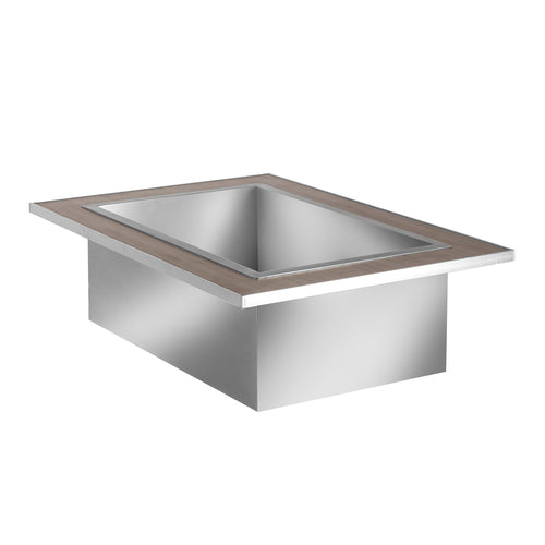 Hub Buffet Drop In Ice Bin Tile, 84 lbs. capacity, 31-7/16" x 22-1/4" overall, 6" deep, includes drain with valve, stainless steel, gray grained laminate border
