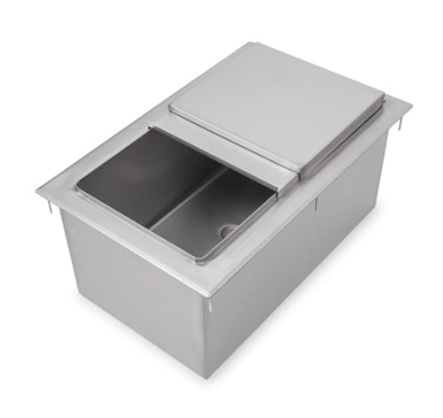 Ice Bin, drop-in, 12"W x 18"D x 12"H overall size, 9"W x 13" front-to-back x 10" deep insulated ice bin, removable sliding lid, drain, 18/300 stainless steel construction, 11-1/4"W x 17-1/8"D cutout recommended, NSF