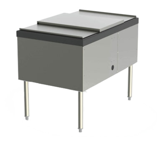 Service Station Ice Chest, with cold plate, 30"W x 38"D, (2) concealed 10-circuit cold plates, 144 lb. ice capacity, ABS top ledge, stainless steel front & sides, stainless steel legs with thermoplastic feet