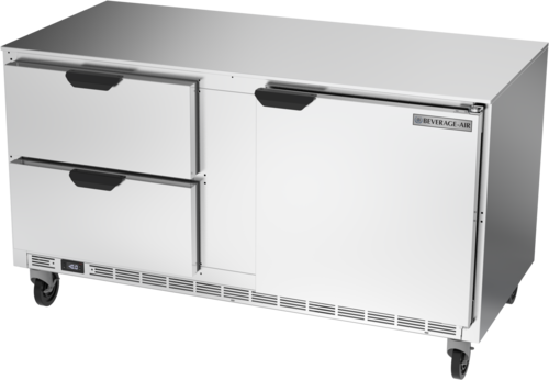 Undercounter Freezer, two-section, 60"W, 17.1 cu. ft., (2) drawers (1) door, (2) shelves, stainless steel exterior & top, aluminum interior, rear-mounted self-contained refrigeration, R290 Hydrocarbon refrigerant, 1/2 HP, cULus, UL EPH Classified, UL-Sanitation, MADE IN USA