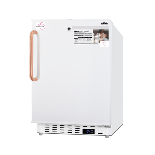 MOMCUBE™ Undercounter Breast Milk All-Freezer, reach-in, one-section, built-in or freestanding, bottom mount self-contained refrigeration, 19.75"W x 24.38"D x 32"H, 2.68 cu. ft. capacity, (1) solid hinged door, antimicrobial towel bar handle, (3) adjustable wire shelves, removable door racks, manual defrost, digital thermostat, high/low temperature alarms, white exterior, level legs & wheels, R600a Hydrocarbon refrigerant, 115v/60/1-ph, 0.6 amps, ETL, cETL, ADA Compliant (Residential)