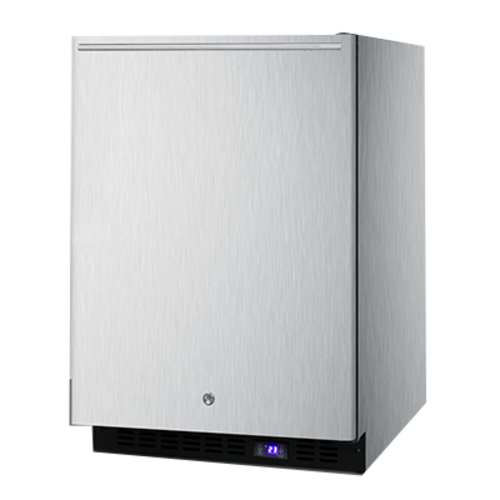 Outdoor Freezer, built-in or freestanding, 23.63"W x 23.5"D x 34"H, 4.72 cu. ft. capacity, frost-free, reversible stainless steel door, horizontal handle, front lock, stainless steel exterior, digital thermostat, LED lighting, adjustable chrome shelves, weatherproof design, 115v/60/1-ph, 2.0 amps, ETL-Sanitation, ETL, cETL (Commercial)