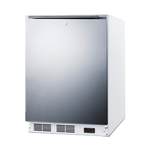 Laboratory Freezer, ADA compliant, reach-in, freestanding, one-section, 23.63"W x 23.5"D x 32.25"H, 3.5 cu.ft., capable of -25°C operation, manual defrost, stainless steel exterior, stainless steel door, reversible door, white interior liner, professional horizontal handle, (3) interior baskets, digital thermostat, lock, bottom mounted self-contained, 115v/60/1-ph, 1.3 amps, ETL-Sanitation to NSF-7, UL, ULC (Commercial) (Medical)