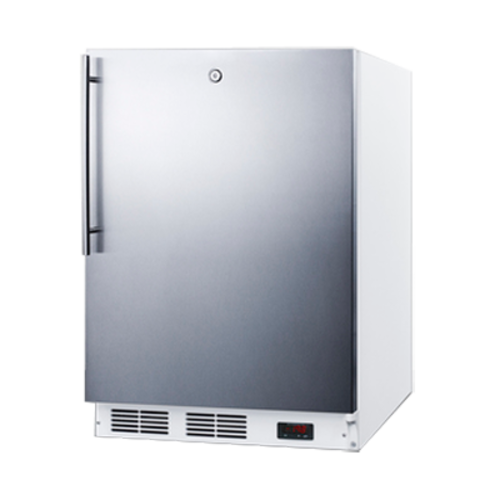 Laboratory Freezer, ADA compliant, reach-in, freestanding, one-section, 23.63"W x 23.5"D x 32.25"H, 3.5 cu.ft., capable of -25°C operation, manual defrost, stainless steel exterior, stainless steel door, reversible door, white interior liner, professional stainless steel handle, (3) interior baskets, digital thermostat, lock, bottom mounted self-contained, 115v/60/1-ph, 1.3 amps, ETL-Sanitation to NSF-7, UL, ULC (Commercial) (Medical)