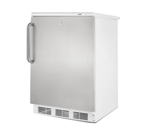 Laboratory Freezer, reach-in, freestanding, one-section, 23.63"W x 23.5"D x 33.5"H, 3.5 cu.ft., capable of -25°C operation, manual defrost, stainless steel exterior, stainless steel door, reversible door, white interior liner, professional towel bar handle, (3) interior baskets, adjustable dial thermostat, lock, bottom mounted self-contained, 115v/60/1-ph, 1.3 amps, ETL-Sanitation to NSF-7, UL, ULC (Commercial) (Medical)