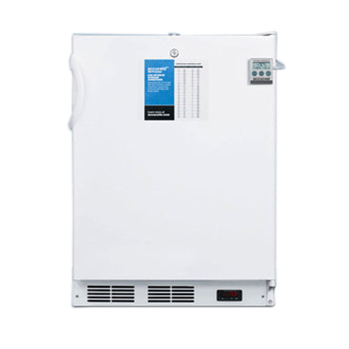 Accucold Undercounter Freezer, ADA compliant height, one-section, built-in or freestanding, 23.63"W x 23.5"D x 32.25"H, 3.2 cu.ft. capacity, manual defrost, dial thermostat, capable of -25°C operation, (1) hinged solid door with lock, (3) interior drawers, self-contained rear mount condenser, white interior & exterior, 115v/60/1-ph, 1.3 amps, ETL-Sanitation to NSF-7, ETL, cETL (Commercial)