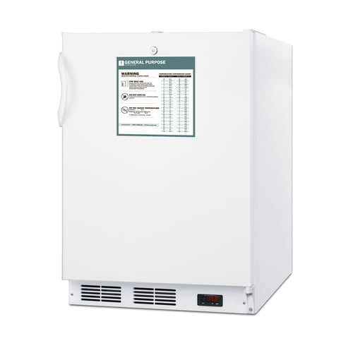 Accucold Undercounter All-Freezer, built-in or freestanding, ADA compliant, 3.5 cu. ft. capacity, digital thermostat, -18º to -25ºC temperature range, manual defrost, (3) slide-out wire drawers with plastic front, (1) reversible right-hand swing locking white door, white cabinet, R134a refrigerant, 115v/60/1-ph, 1.3 amps, cULus
