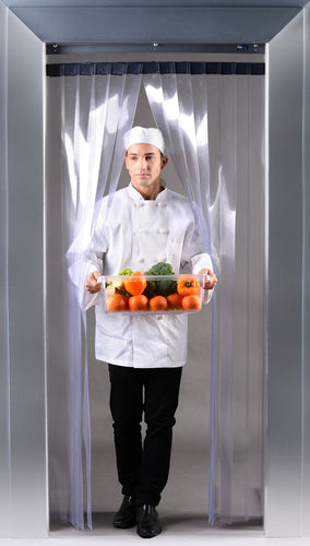 FlexCool® Single Layer Economy Freezer/Cooler Strip Curtain, 55"W x 108"H, 97% overlap, textured clear polyvinyl strips, -10°F to 180°F temperature range, velcro attachment system, Made in USA