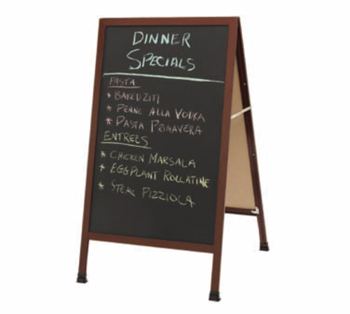 Sidewalk Markerboard, 24"W x 42"H, black acrylic board, extruded aluminum frame, steel reinforced corners, full length piano hinges & two locking folding hinges, weather resistant hardware, plastic camel foot floor leveler, cherry powder coated finish