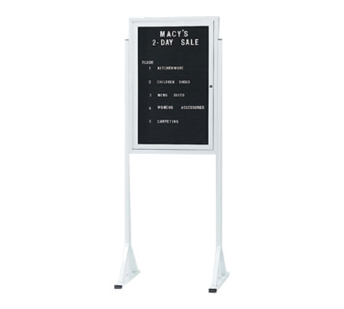 Letter Board Cabinet, 24"W x 36"H, 72"H overall, free standing, black felt panel, aluminum frame, shatter resistant acrylic window, lockable door, double pedestal stand, reinforced feet extending front and rear, includes (2) keys, (1) set of 3/4" Helvetica letters and assortment tray, satin anodized finish