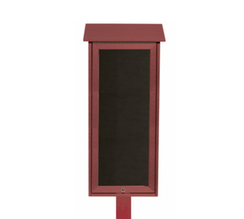 Slimline Message Center, 16"W x 34"H, freestanding, black letter board, plastic lumber frame, (1) door, top hinged, full length piano hinges, lockable, plastic lumber single post, includes: (2) keys, (1) set of 3/4" Helvetica letters and assortment tray, weatherproof, rosewood (packed in 2 boxes, must be shipped LTL)