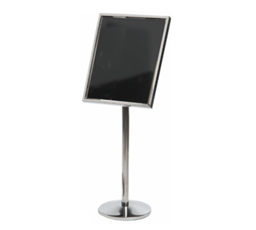 Broadcaster Display Stand, 24" x 20" frame (22-1/2" x 17-1/2" inside dimension), universal horizontal/vertical design, neon markerboard on one side, menu/poster holder on other side, round weighted base, includes removable cover & markers, chrome finish
