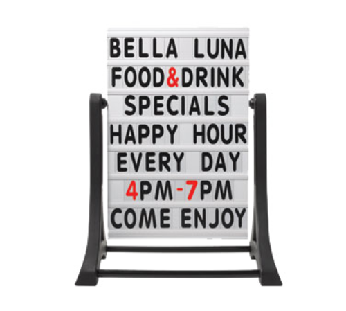 The Rocker™ Sidewalk Sign, 24"W x 36"H (board only), 32"L x 22"W x 42"H (overall length), double sided, durable frameless, white 7 line high contrast changeable letter board, includes: set of (354) 4" characters, weather resistant, rocking motion generated by wind, (assembly required)