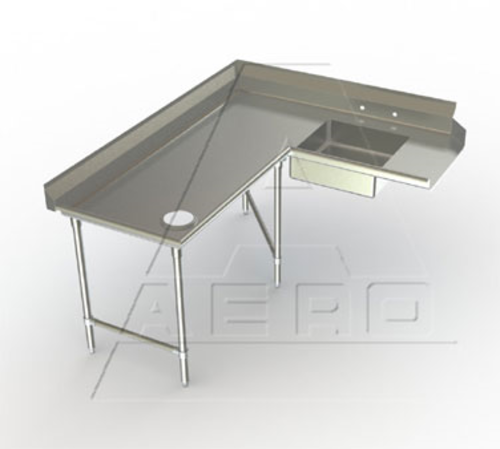 Delux™ Soiled Dishtable, corner design, 60" machine to corner, 144" corner to end, 30" working depth, 40"H, left-to-right operation, 16/304 stainless steel top, 7"H backsplash with 2" sanitary return, 8" OC splash mount faucet holes, 20" wide x 20" front-to-back x 5" deep fabricated pre-rinse sink, fully welded stainless steel gussets, 16/304 stainless steel legs & side cross bracing, adjustable white metal feet, Aero Hemmed Safety Edge™, KD, NSF